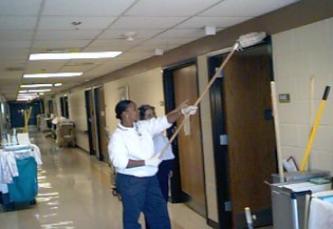 Clean appliances, counters, cabinets, table & chairs. Clean, scrub and sanitize sinks. Counter tops & backslashes cleaned and sanitized. Clean range tops. Top of refrigerator & appliance exteriors cleaned. Clean inside & outside of microwave ovens. Wash floor. |